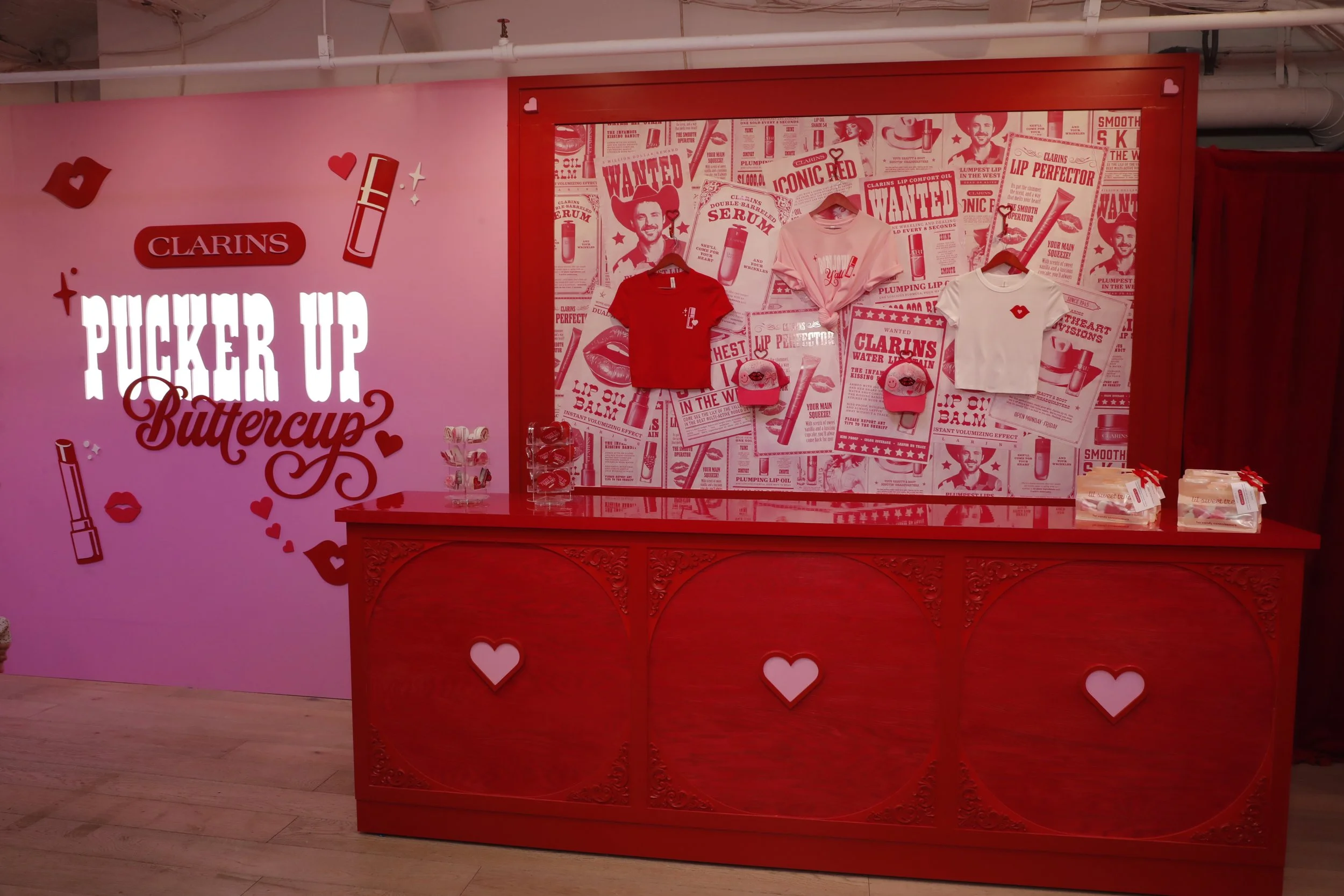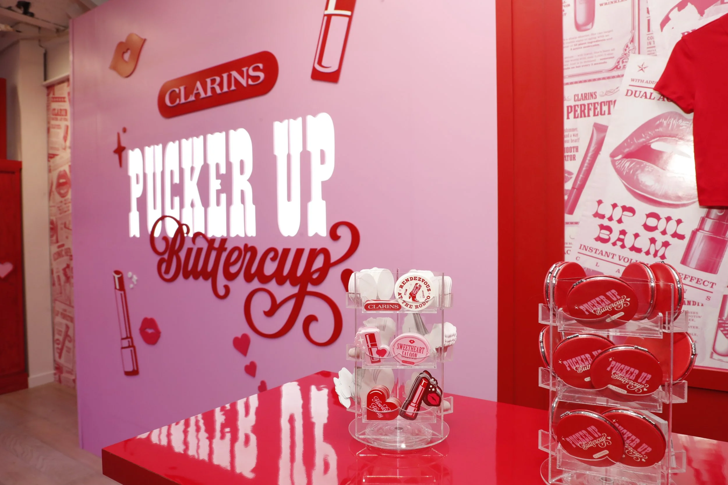 To launch their new lip stains and limited-edition Lip Comfort Oil, Clarins partnered with us to create the Sweetheart Saloon, a Western-inspired, pink-and-red pop-up designed to be irresistibly kissable.